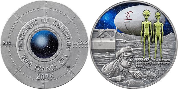 | 2000 Francs KM# 822 | 2025 | silver - 999 | BU | Interstellar Phenomena Socorro UFO Incident. |