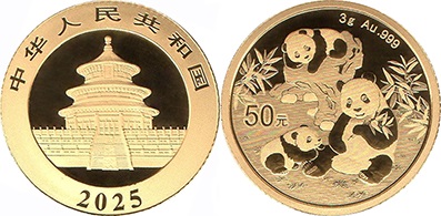 | 50 Yuan KM# 2888 | 2025 | gold - 999 | BU | Temple of Heaven. Relaxed pPandas. Investment coin. |