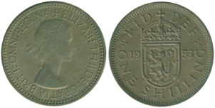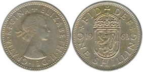 ![]() | 1 Shilling KM# 905 | 1963 1954-1966/ 1970 | copper-nickel | VF | Scottish arms. Obv.leg:W/o BRITT.OMN. |