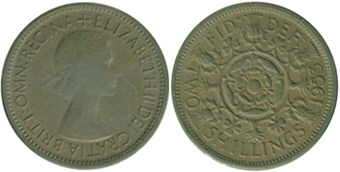 ![]() | 2 Shillings KM# 906 | 1967 1954-1967/ 1970 | copper-nickel | Unc | Tudor Rose. Obv.leg:W/o BRITT.OMN. |