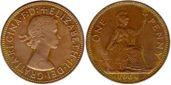 ![]() | 1 Penny KM# 897 | 1964 1954/1961-1967/1970 | bronze | VF+ | Seated Britania. Obv.leg:W/o BRITT.OMN. |