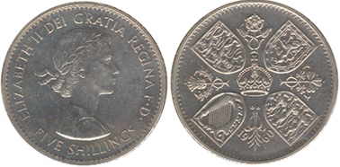 ![]() | 5 Shillings KM# 909 | 1960 | copper-nickel | P/L | British Exhibition in New York. |