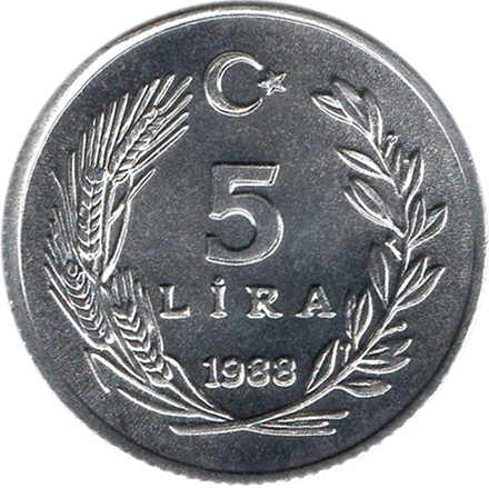 Turkey/ 5 Lira/ 1988